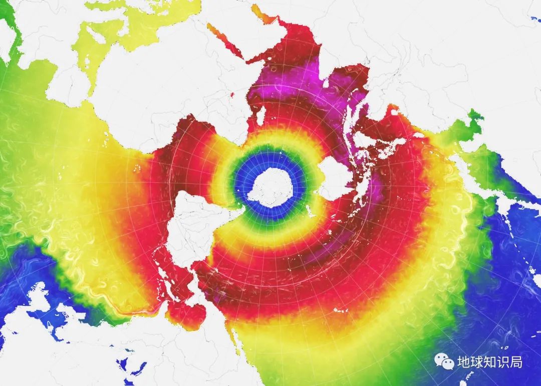 换个角度,就是一个环绕南极向北分离开来的世界大洋