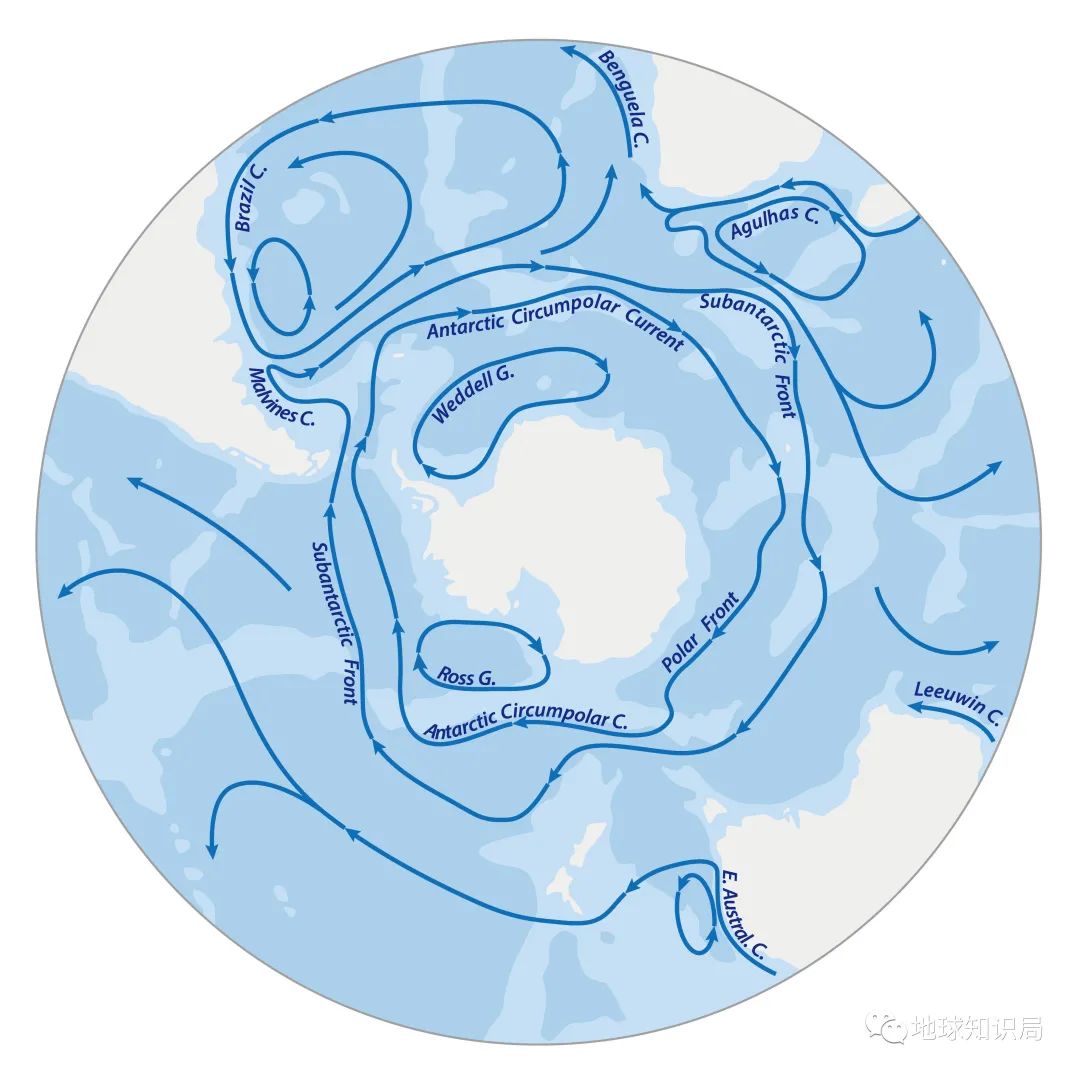 另一方面,南极冰川的融化与季节性变化,引起南极大陆附近海域的温度、盐度变化,进而带来南极沿岸海域与外海的密度差,形成自西向东的地转流。这也是南极绕极流形成的重要原因。