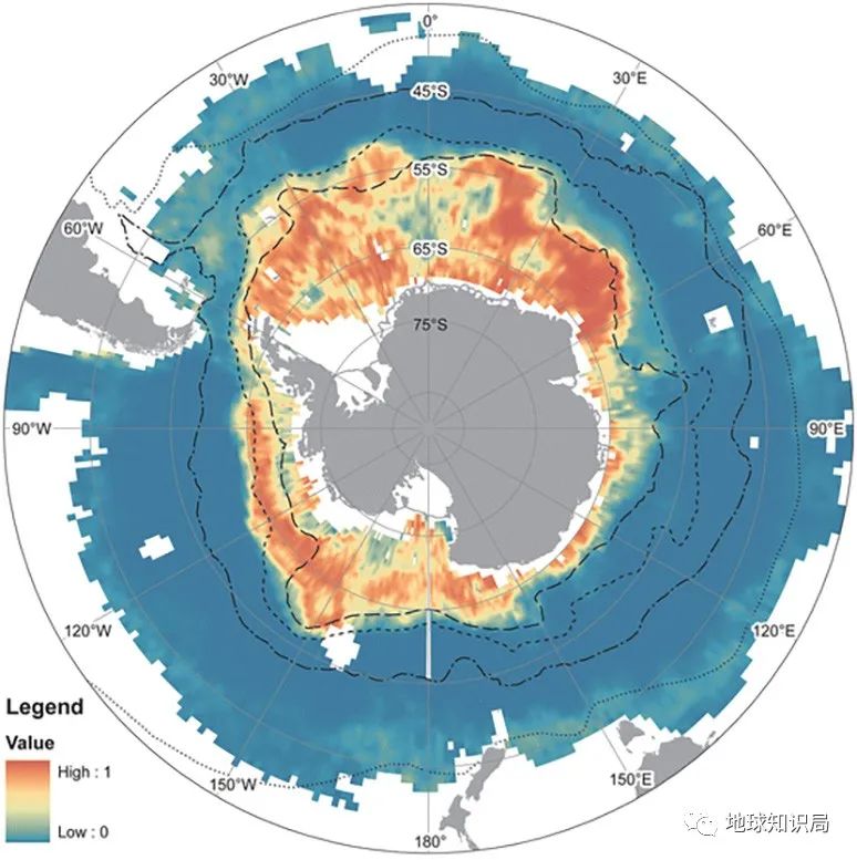 分布在南北纬35-65度之间的西风带,与这一片开阔海域高度重合。强劲的西风吹动南冰洋表层海水,形成自西向东流动的洋流,这便是西风漂流。海域能够绕地球一周,显然是西风漂流形成的前提。