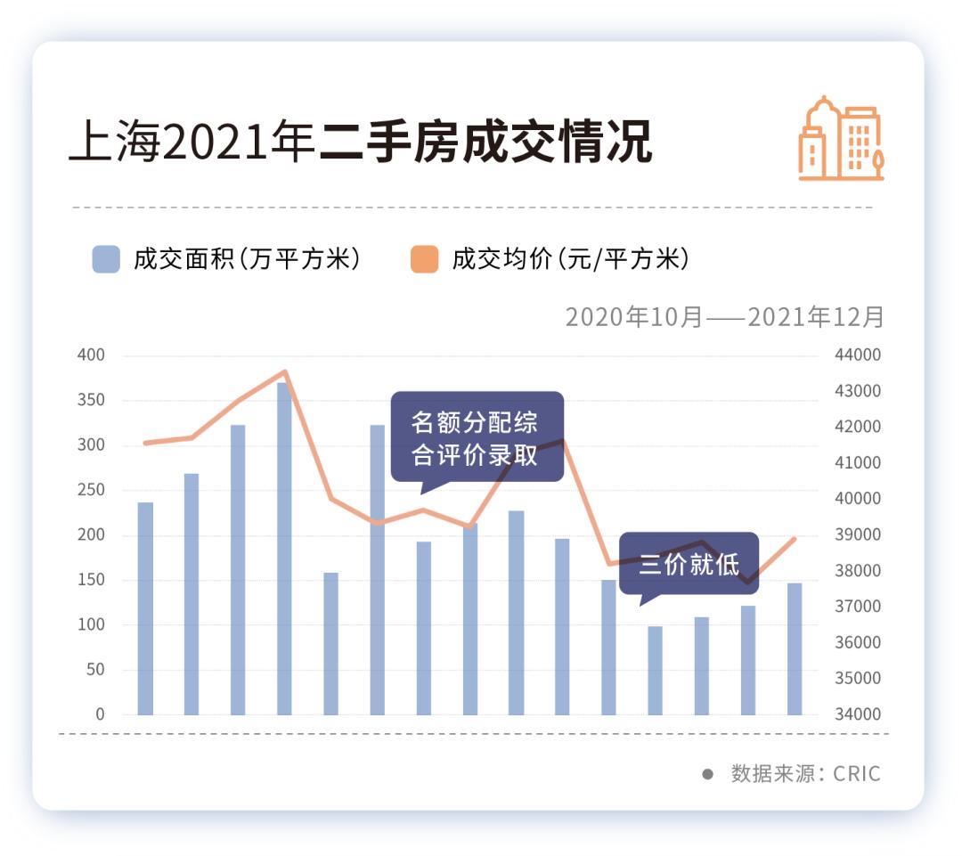 4月之后,上海二手房的整体成交一直处于相对低位,价格在6月出现过一波上涨,但在8月上海发布“三价就低”(2021年8月6日起,上海各银行审核二手房贷款金额,将根据合同网签价、涉税评估价、银行评估价三个价格中,取最低的价格审批贷款额度。)政策之后,二手房成交均价与成交量都出现了大幅走低。