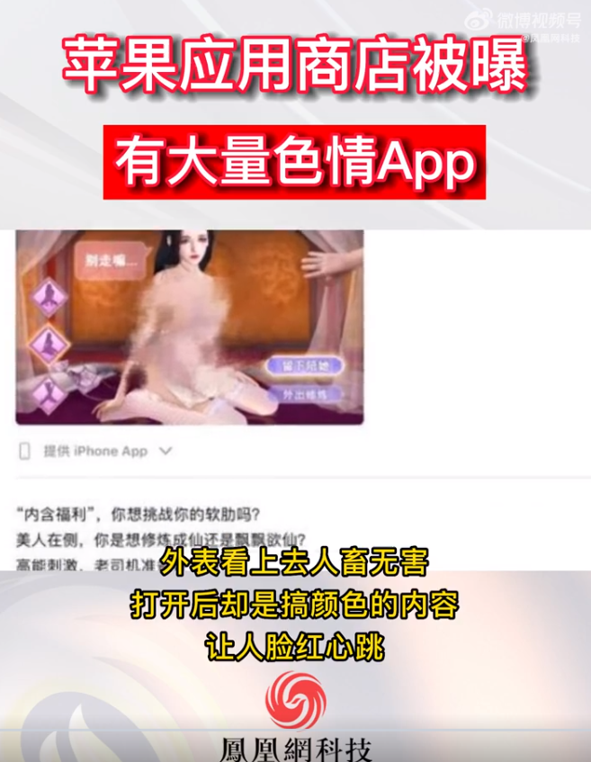 据凤凰网科技,近日,有网友在社交平台上爆料,在苹果应用商店,发现一款名叫“Small fat answer”的App,不论从名字还是简介来看,都是个答题类的小游戏;但是下载打开后,发现出现黄色内容。对此,苹果客服回应:很震惊,记录下应用名字后,表示会进一步了解情况。