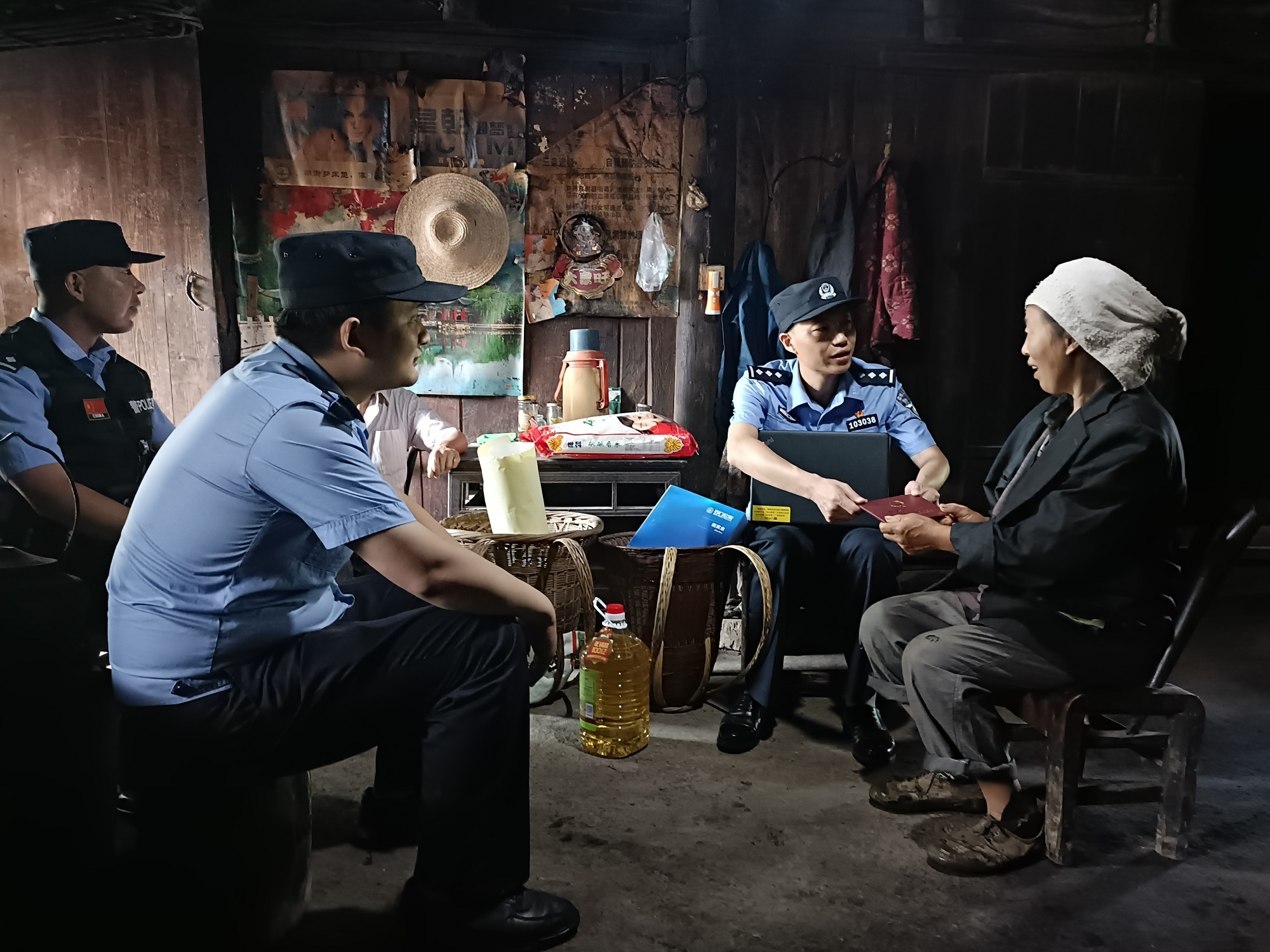 民警将“背篓警务”移送到社区,釆访人囗信息。