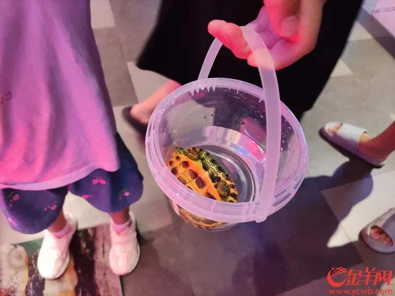 外表类似于“娃娃机”的机器里装的不是布偶玩具,而是活鱼和活龟?7月25日上午,记者现场走访广州时尚天河商场内的这三台“特殊”的娃娃机,发现确有其事。