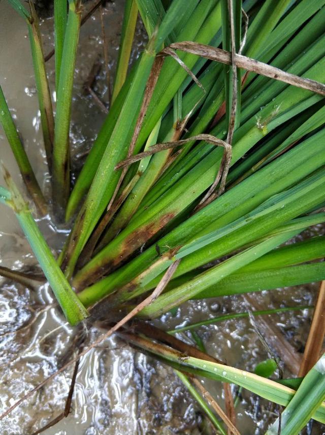 水稻的叶片、叶鞘,在叶鞘上出现水渍状病斑。在未出穗之前发生较为严重的纹枯病,很容易造成叶鞘内部的穗轴受到侵染,使得穗轴病变不能向穗部供给养分,造成水稻的出穗延迟,即便是出穗了也是死穗,不会灌浆。高温高湿气候条件对纹枯病的发生十分有利,目前已进入初侵染盛期,随着气温升高,水稻封行,通透性变差,水稻中下部将持续处于高温高湿的环境中,将进一步加重纹枯病的发生和扩展。