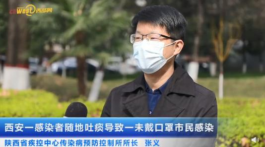 3月10日,西安市报告1例确诊病例,因没有佩戴口罩,碰巧从另一名正处于发病期的感染者吐的一口痰旁经过,导致了感染。