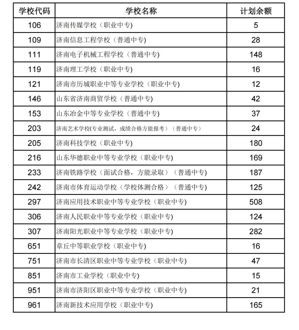 齐鲁网·闪电新闻7月26日讯 记者从济南市教育局了解到,济南市2022年高中阶段学校招生第三批次录取已经结束,部分中等职业教育学校尚有计划余额,经研究,将进行征集志愿。现将有关事项公告如下: