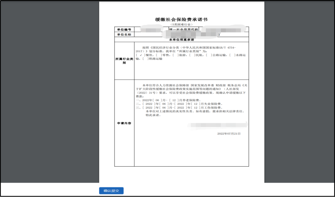 查看《甘肃省阶段性缓缴社会保险费政策实施范围申请表》和《承诺书》