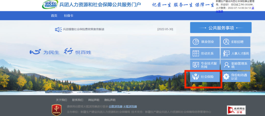 1.选择险种类型:养老保险/失业保险/工伤保险。