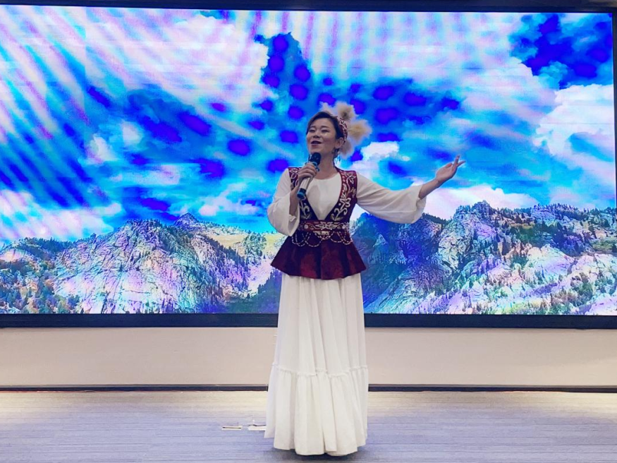 哈萨克族姑娘阿来依、黑龙江女企业家孙玉兰表演了节目,抒发了民族团结一家亲的喜悦心情。