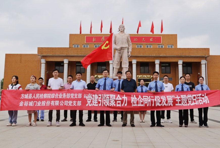 近日,河南省南阳市方城县检察院综合业务部党支部,与金裕城门业股份有限公司党支部联合开展“党建引领聚合力 检企同行促发展”结对共建“手拉手”主题党日活动。通过促进双方党建文化,重温初心、践行使命,以高质量的党建工作聚力推动民营经济高质量发展。
