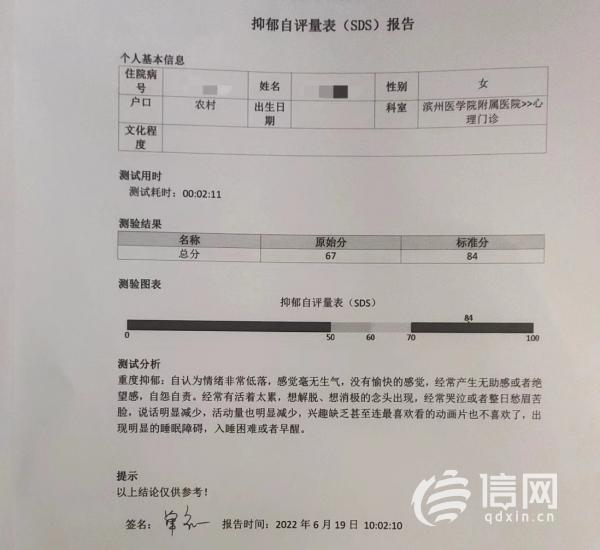 “孩子说,于老师揪着她的辫子把她从课桌旁拉出来,打了她。最后在老师的办公室,被罚站到十一点半下课。”听了女儿的遭遇,李先生又急又怕,赶紧带着孩子到医院检查。经过诊断,李先生的女儿被诊断为脑震荡、牙震荡,同时经过抑郁评量(SDS)以及焦虑评量(SAS),结果显示重度抑郁、中度焦虑。