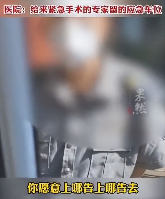 拍摄者王先生表示,自己事后询问医院投诉科负责人,对方说该车位是应急车位,保安是新来的,所以解释欠妥。