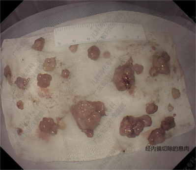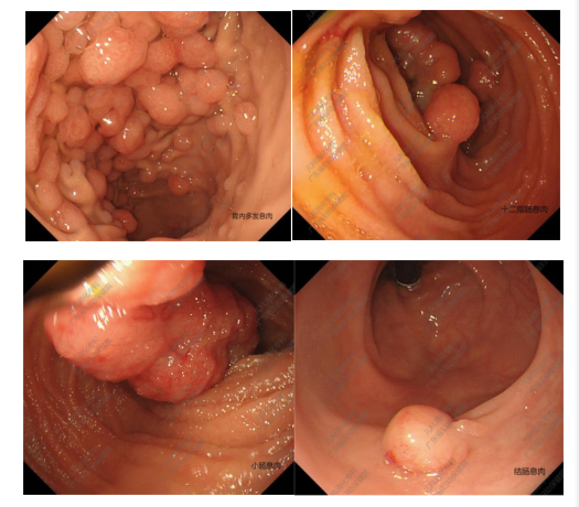 几乎所有的患者都有胃肠道息肉,可分布于全胃肠道,以小肠多见,其次是大肠和胃。这些息肉大小不定,表面光滑,质硬。较大息肉可呈菜花样。