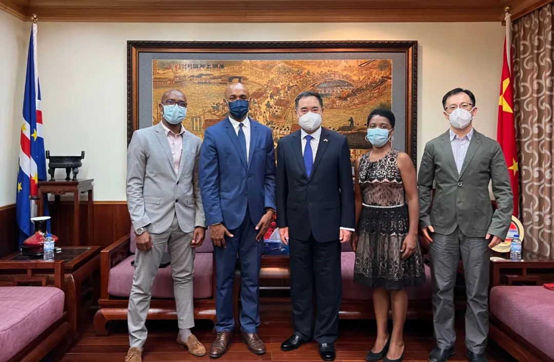 近日,驻佛得角大使徐杰应约会见佛得角—中国友好协会会长何赛一行,使馆石雷克参赞等在座。