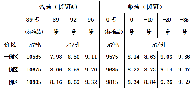 1、表中汽油和柴油价格为符合第六阶段强制性国家标准国ⅥA车用汽油和Ⅵ车用柴油价格。