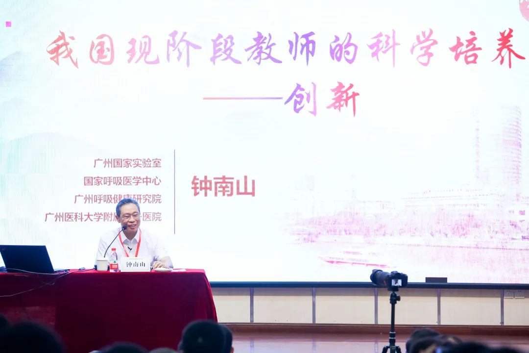 7月25日上午,“全国科学教育暑期学校”中小学教师培训(广州会场)在华南师范大学开班。钟南山以“我国现阶段教师的科学培养——创新”为主题,通过线上线下相结合的形式,为中小学教师授课。
