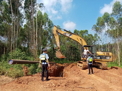 7月26日上午,执法人员对G72泉南高速柳南段1446+580—1460+100(柳州往南宁方向)处与高速公路并行埋设成品油管道施工项目进行安全监管,重点查看是否存在不安全不规范施工行为、埋设管道与高速公路用地的安全距离是否符合《公路涉路施工活动技术规范》(DB45/T 1202--2015)相关规定要求等情况,并对施工人员进行安全教育,要求施工人员高度重视安全生产工作,严格按照施工方案进行施工,确保生产安全和人身安全“双保险”。
