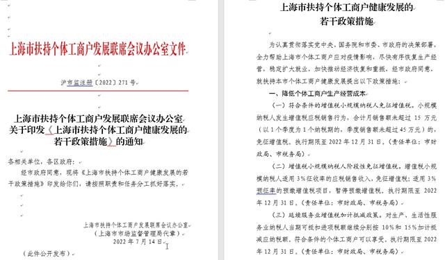 央视网消息:近日,上海市扶持个体工商户发展联席会议办公室发布《关于印发上海市扶持个体工商户健康发展的若干政策措施的通知》。主要内容如下。