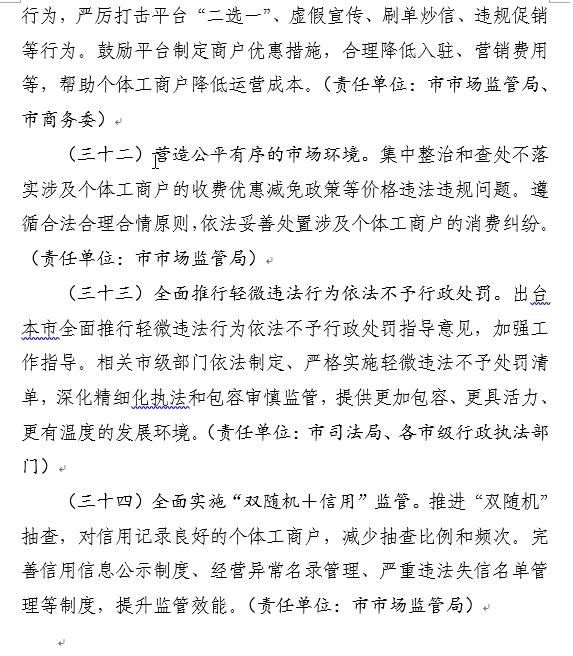 强化网络交易平台监管。对网络交易平台靠前开展合规指导,指导平台完善服务协议和交易规则,规范平台经营行为,严厉打击平台“二选一”、虚假宣传、刷单炒信、违规促销等行为。鼓励平台制定商户优惠措施,合理降低入驻、营销费用等,帮助个体工商户降低运营成本。