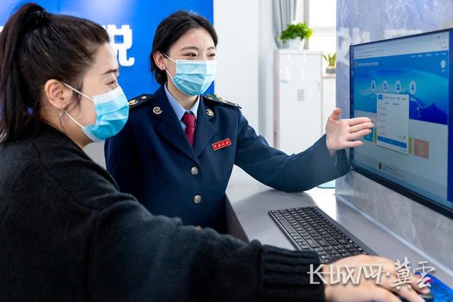 唐山市乐亭县税务干部辅导纳税人进行退税业务操作。谭小飞 摄