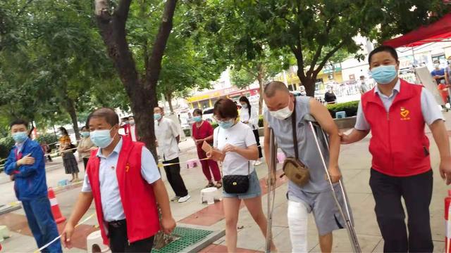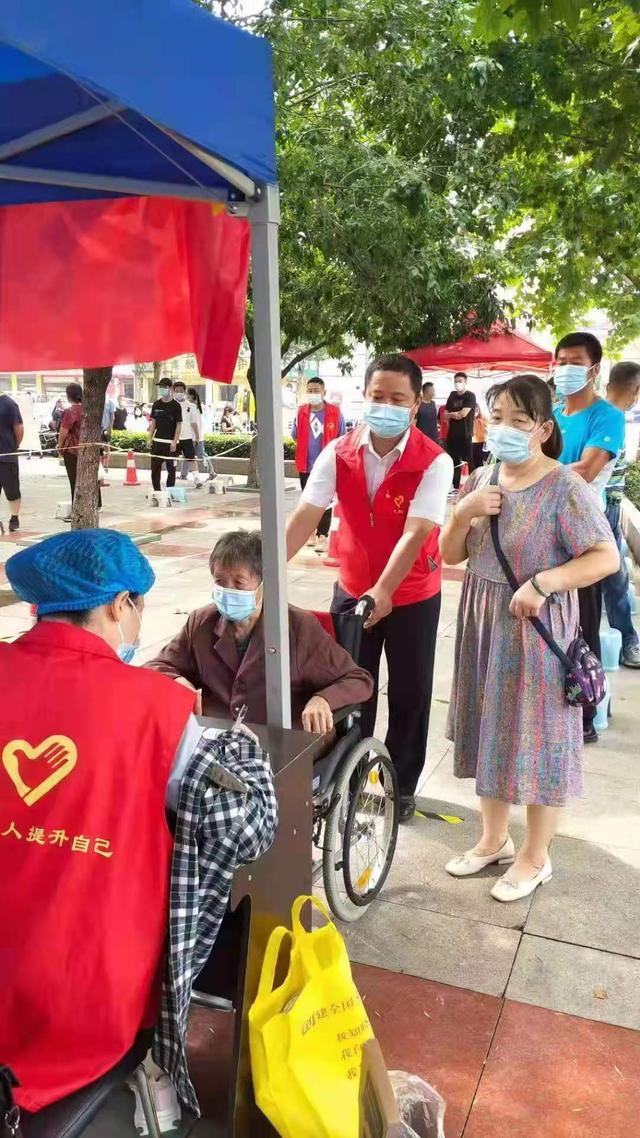 “沈大娘,别着急,我来帮您!”在市水利工程局东区家属院,70多岁月的沈大娘由于身体残疾行动不便,张佳佳快步跑到沈大娘面前,搀扶她坐到到轮椅上,推着她到核酸检测点排队等候。
