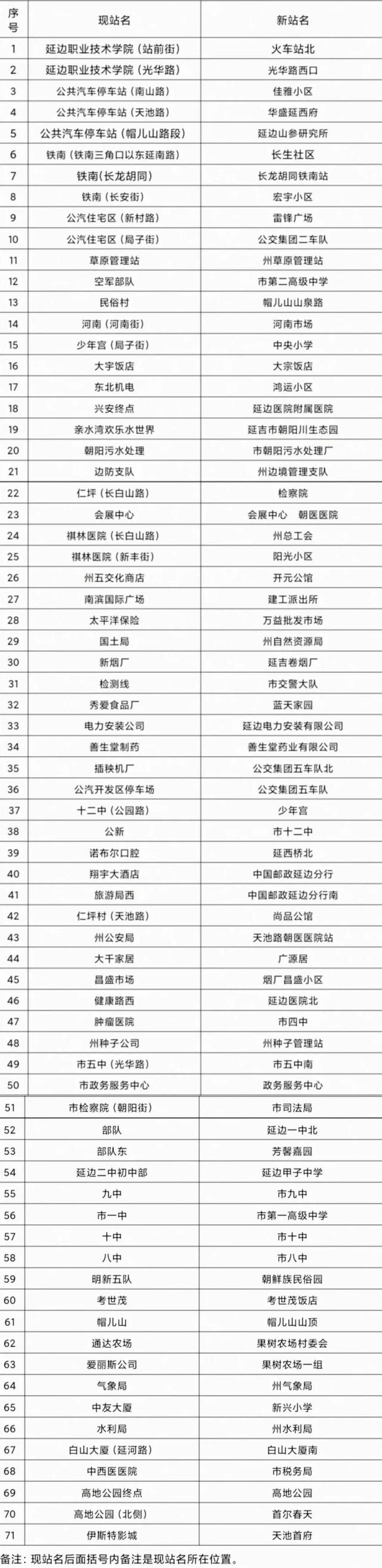 此外,延吉市公交集团有限公司还将对71个公交站点重新命名。