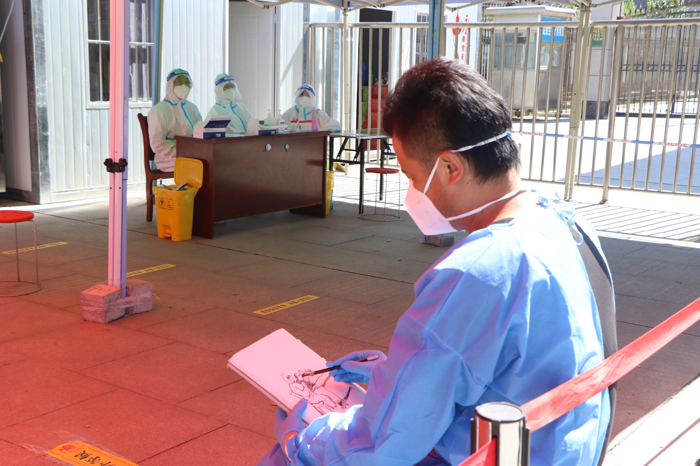 身着防护服的医务人员、逆行奔赴驰援兰州核酸检测的坚定身影、核酸检测一线一丝不苟的工作者……栩栩如生的画面,将甘肃省定西市疫情防控中最难忘的瞬间定格。在甘肃省定西市文联画家们的笔触下,一幅幅精美感人的抗疫画面诞生。
