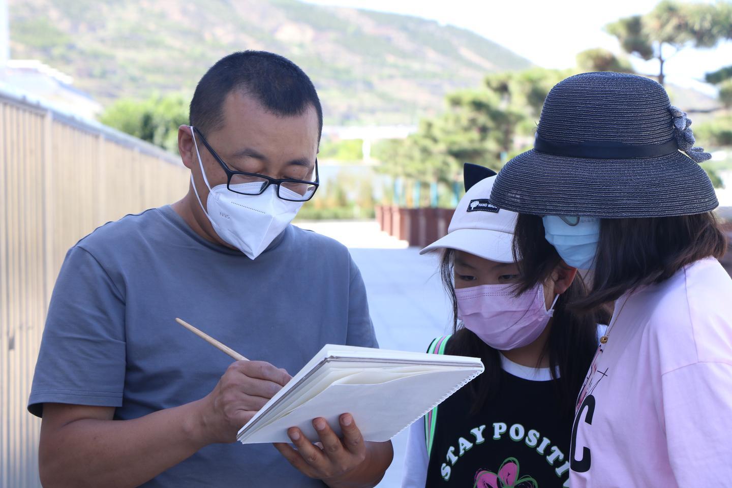 7月22日下午,在甘肃定西高铁北站广场,一场别开生面的现场绘画活动吸引了群众驻足观看。