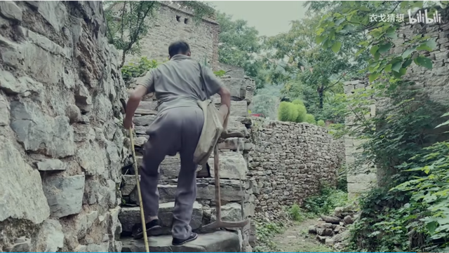 因为残疾,他走起路来像一张拉不开的弓,永远抬着左脚,佝偻着。