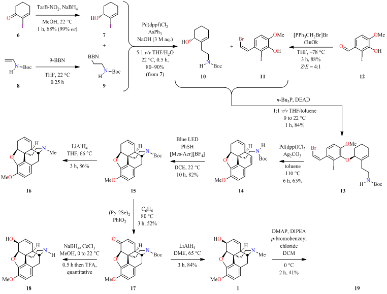 吗啡喃镇痛药直接作用于中枢神经系统,可选择性减轻人体的痛觉,临床上用于急性或慢性的疼痛。在已发表的关于吗啡喃的不对称全合成工作中尚无一条全合成路线具备工业化应用潜力。