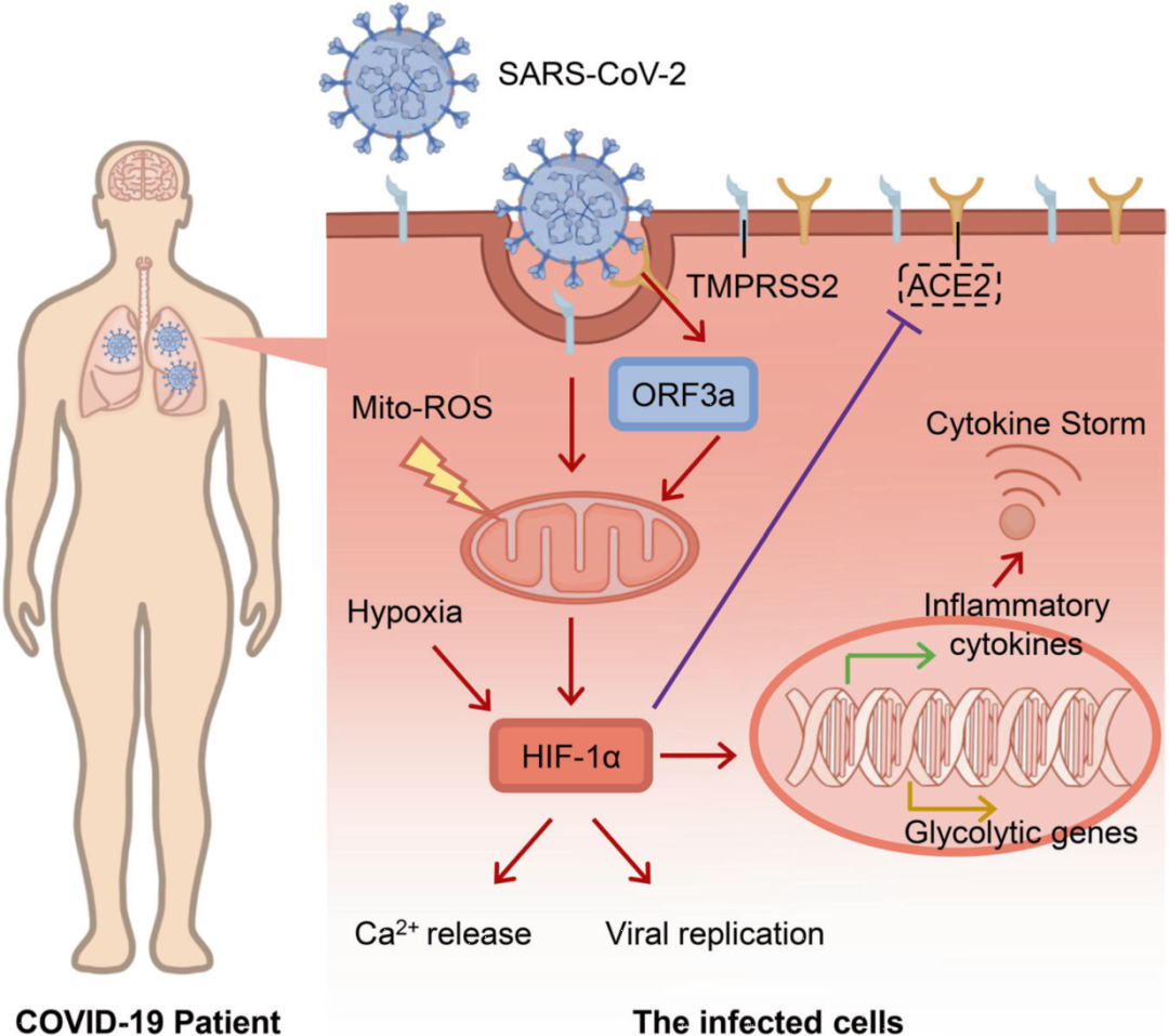 图4.HIF-1α介导的缺氧信号在COVID-19中的作用