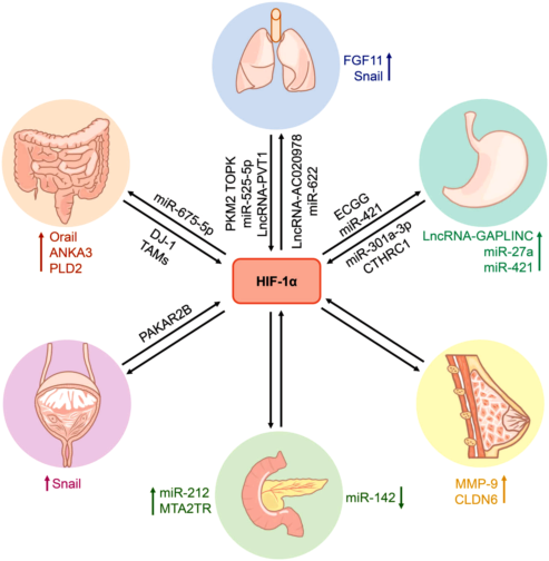 图5.HIF-1α在肿瘤发生发展中的作用及机制