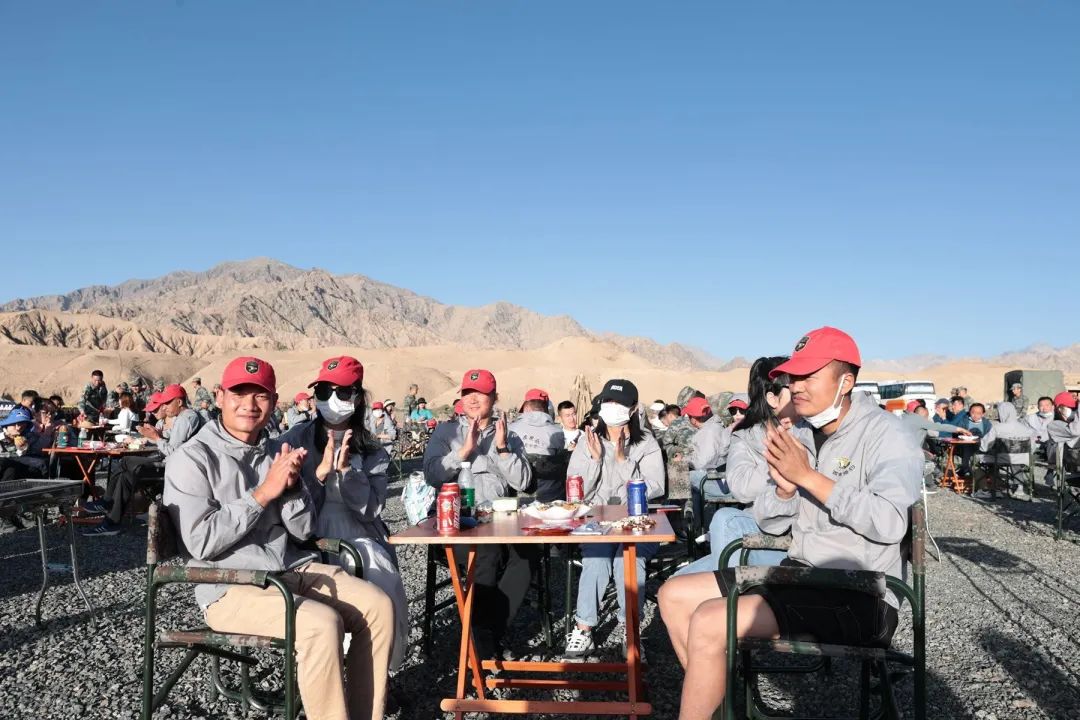 暖心的布置、美味的食物、精彩的表演……篝火晚会现场,大家手牵着手围着篝火尽情歌舞,欢呼声笑声久久回荡在大漠戈壁。