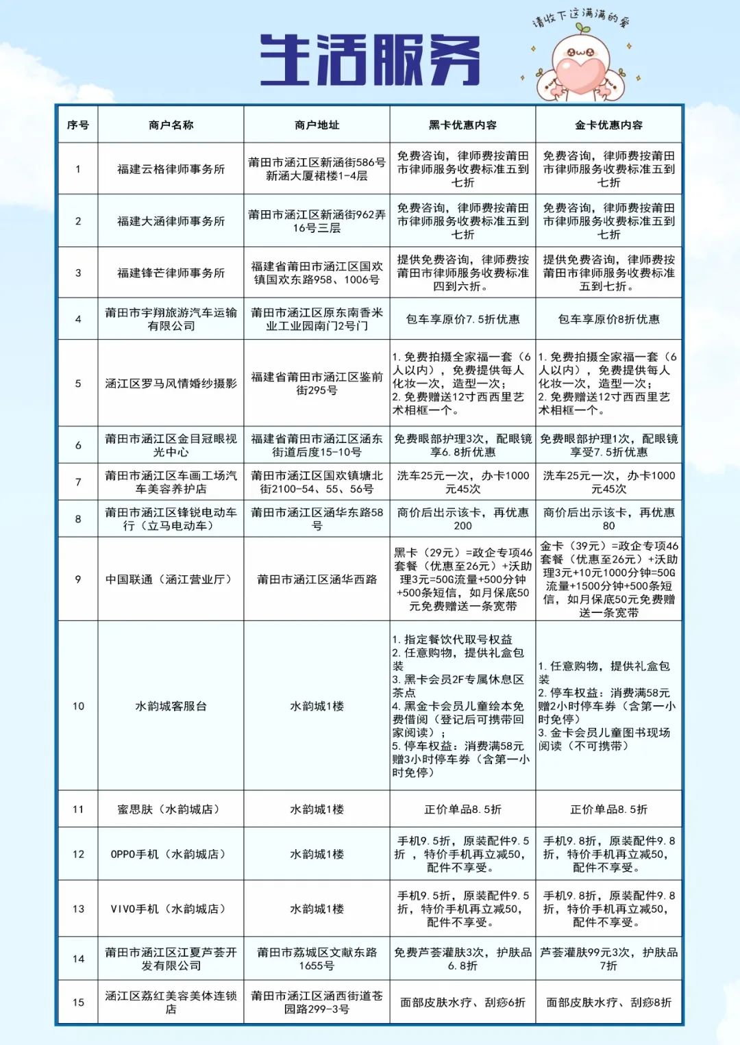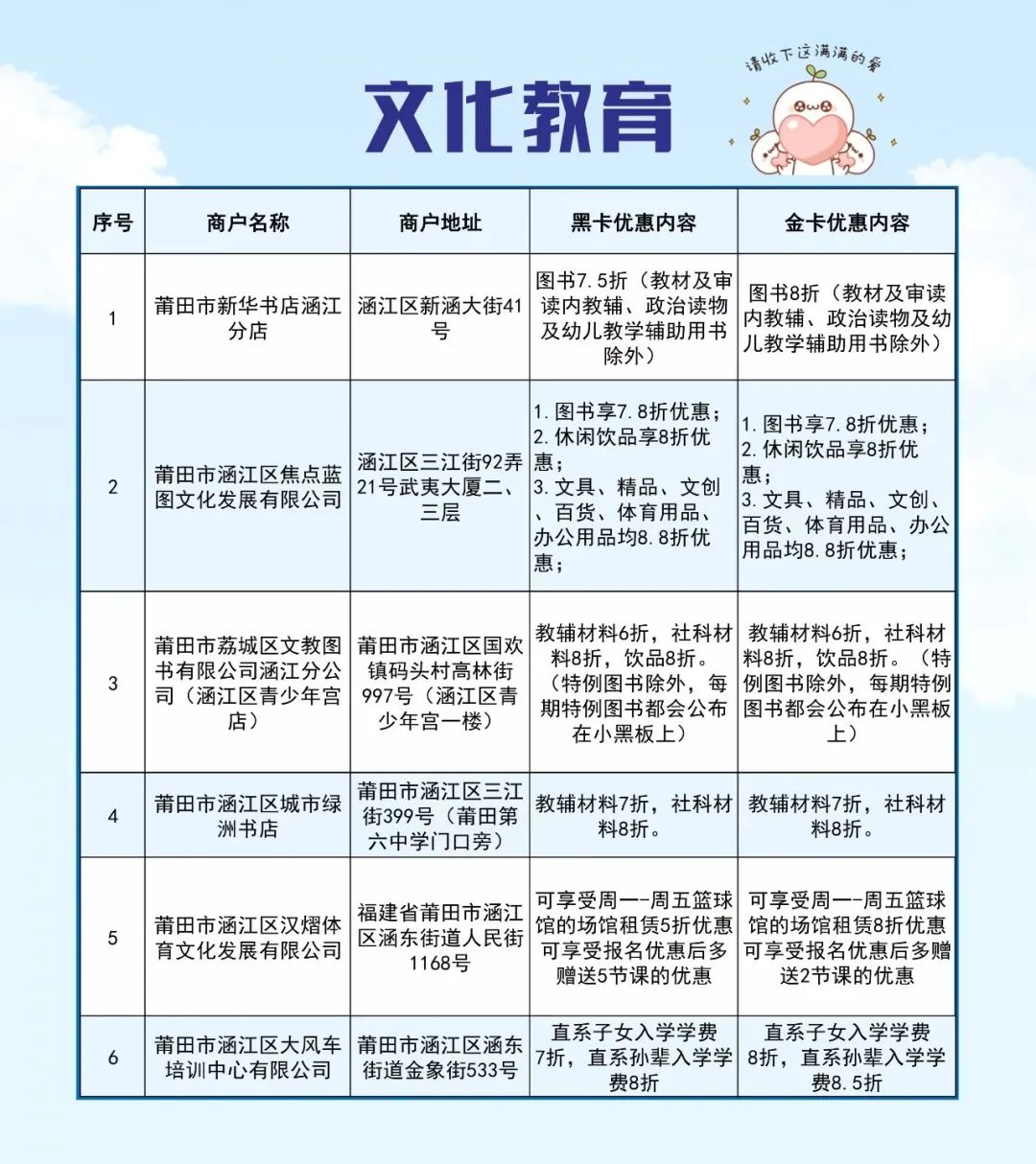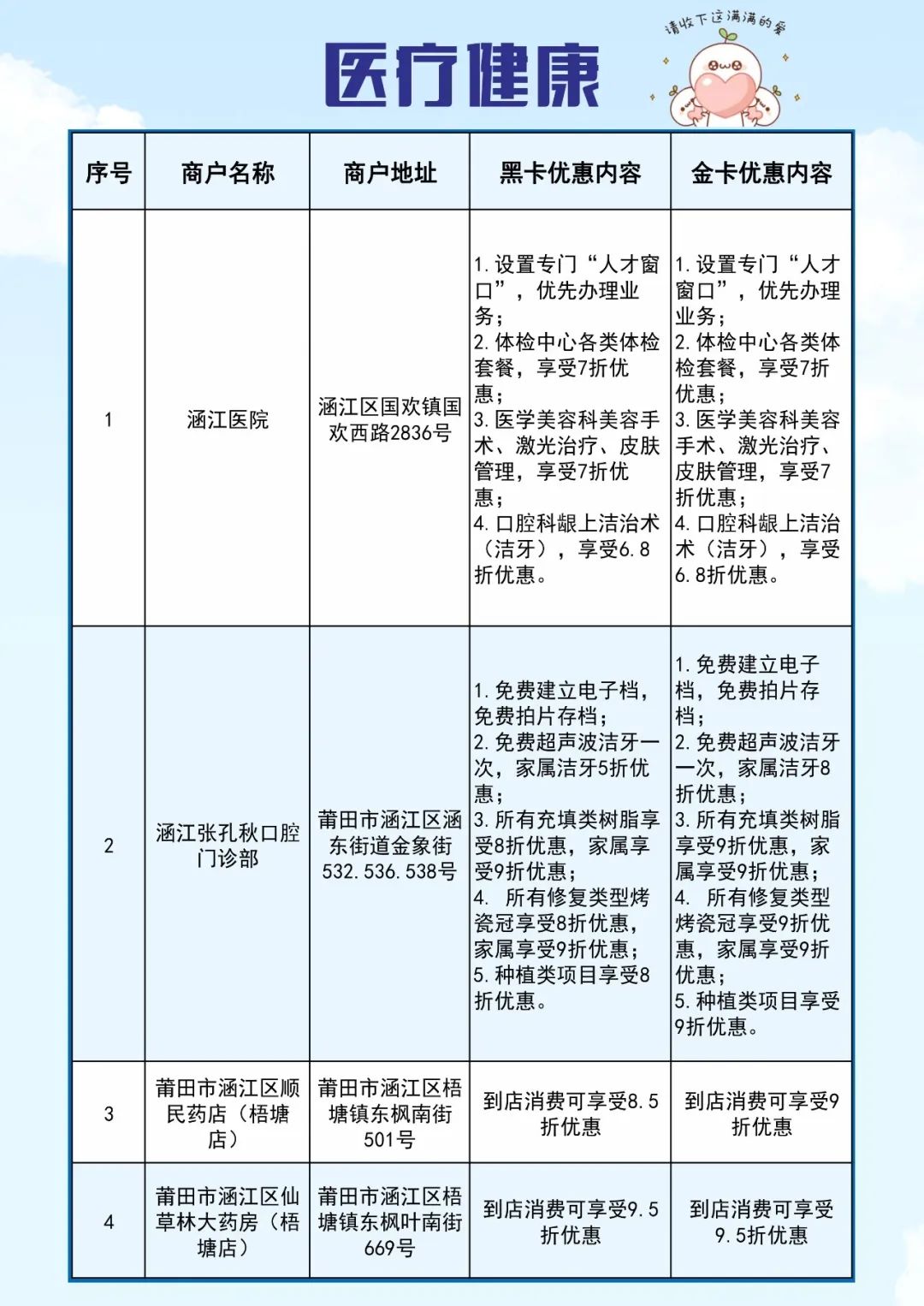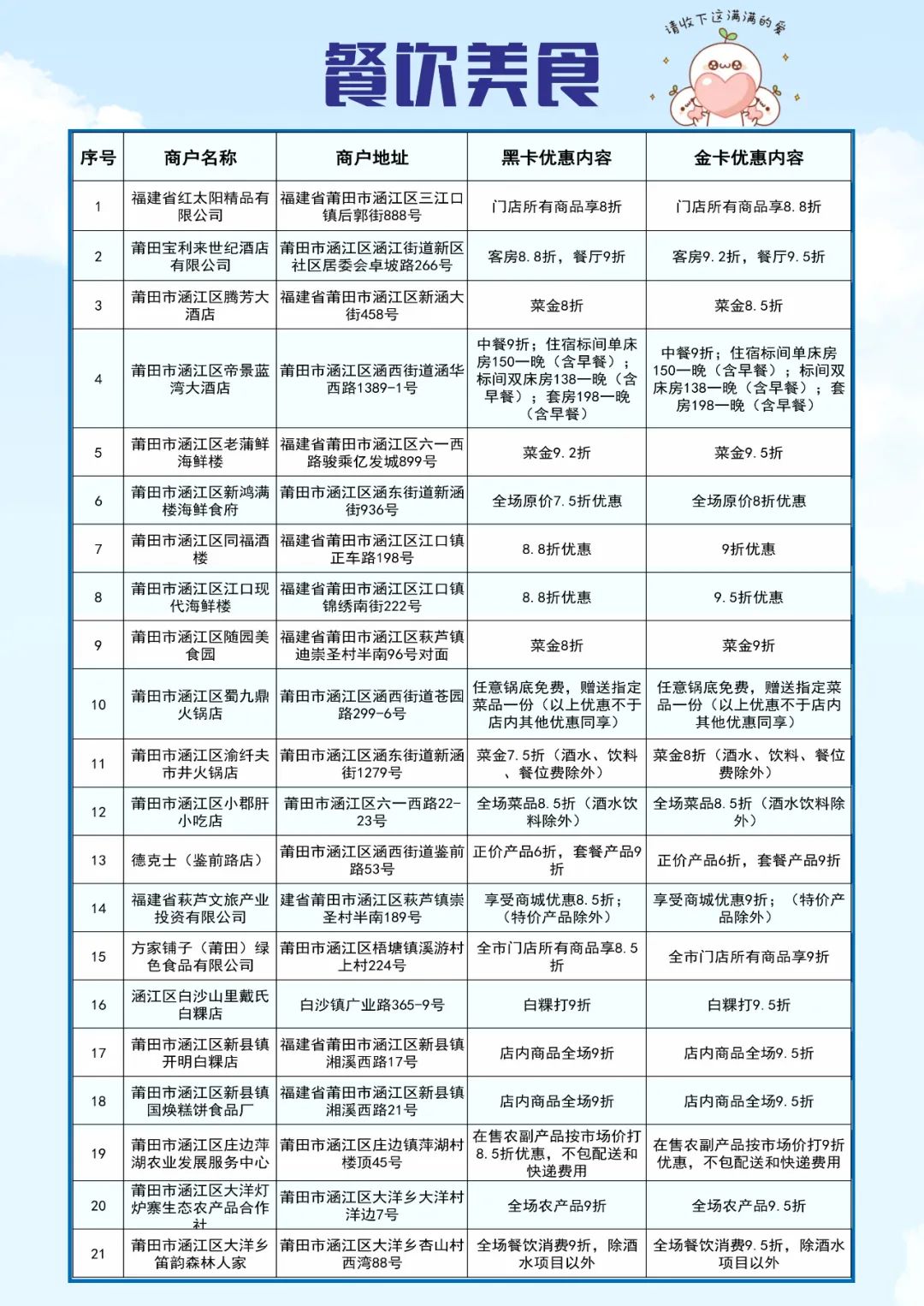 日前,涵江区推出了“领涵英才卡”人才福利,并遴选出首批69家特惠商户,人才可持卡到店享受特惠服务。那么特惠商户具体是哪几家?门店在哪里?优惠力度有多大?快和小编一起来看看吧!