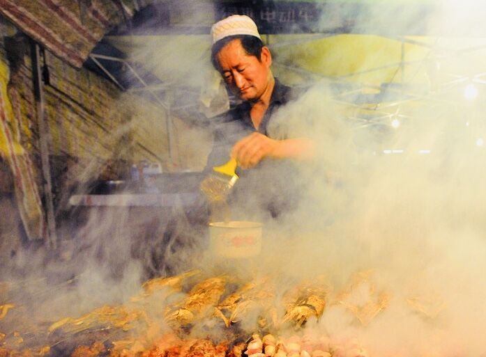 四季美食夜市非常有民族特色,手抓肉、炒黄面、烤狗鱼、烤肉串、烤包子……可谓一街之内,吃遍新疆美食。