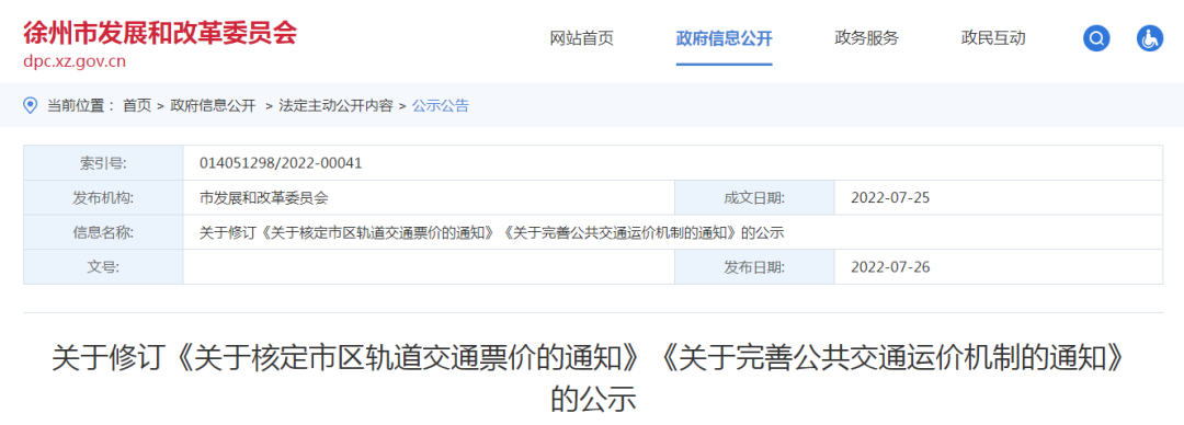 按照市政府依法行政领导小组《徐州市规章和行政规范性文件实施后评估办法》要求,计划对《关于核定市区轨道交通票价的通知》《关于完善公共交通运价机制的通知》(以下简称“两个通知”)相关条款依法修订,有关事项公示如下: