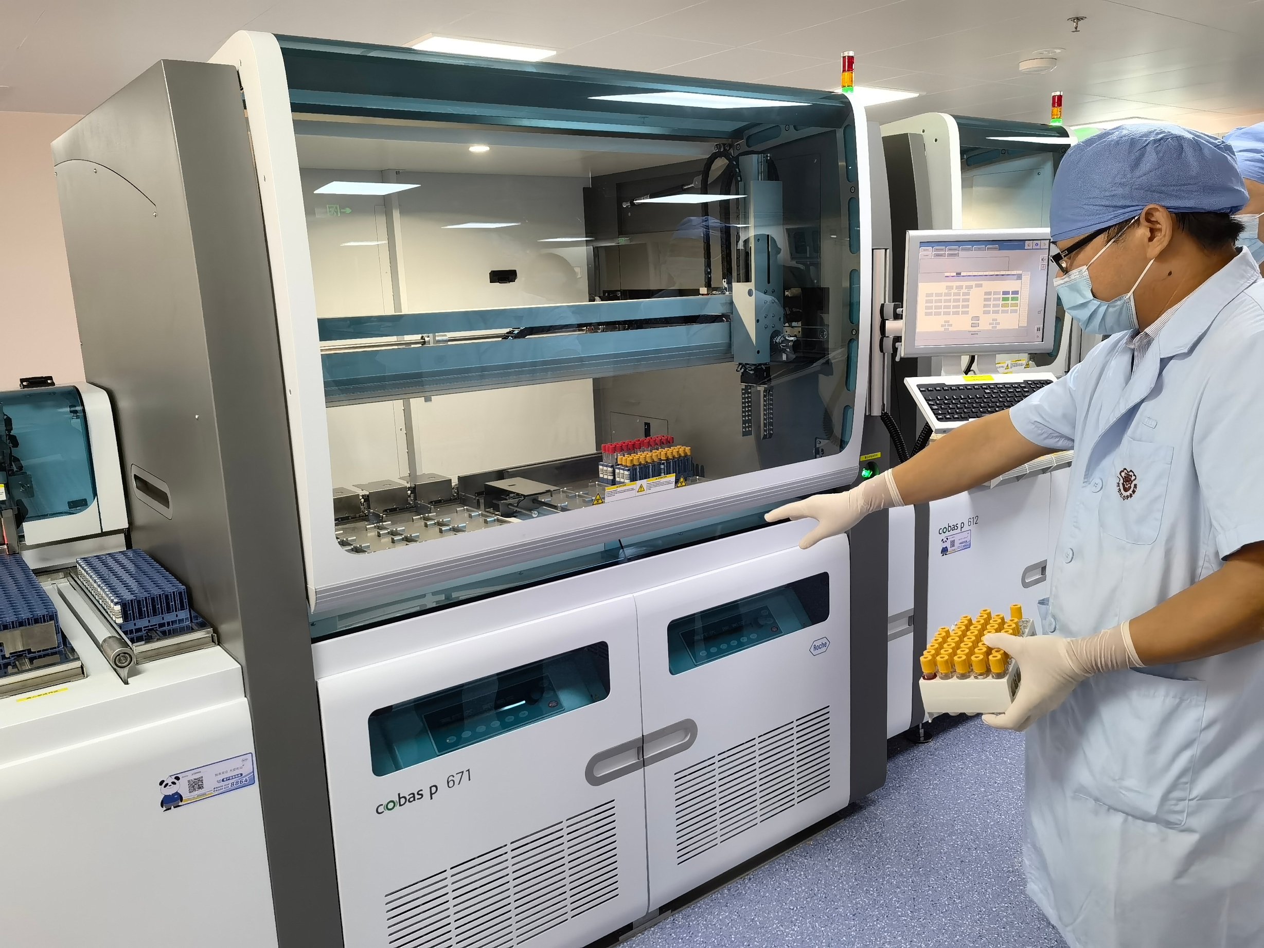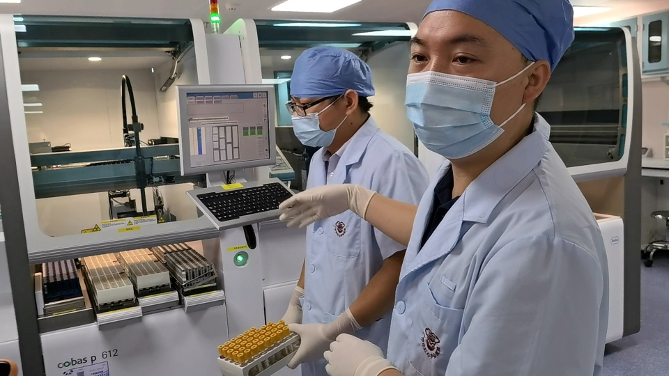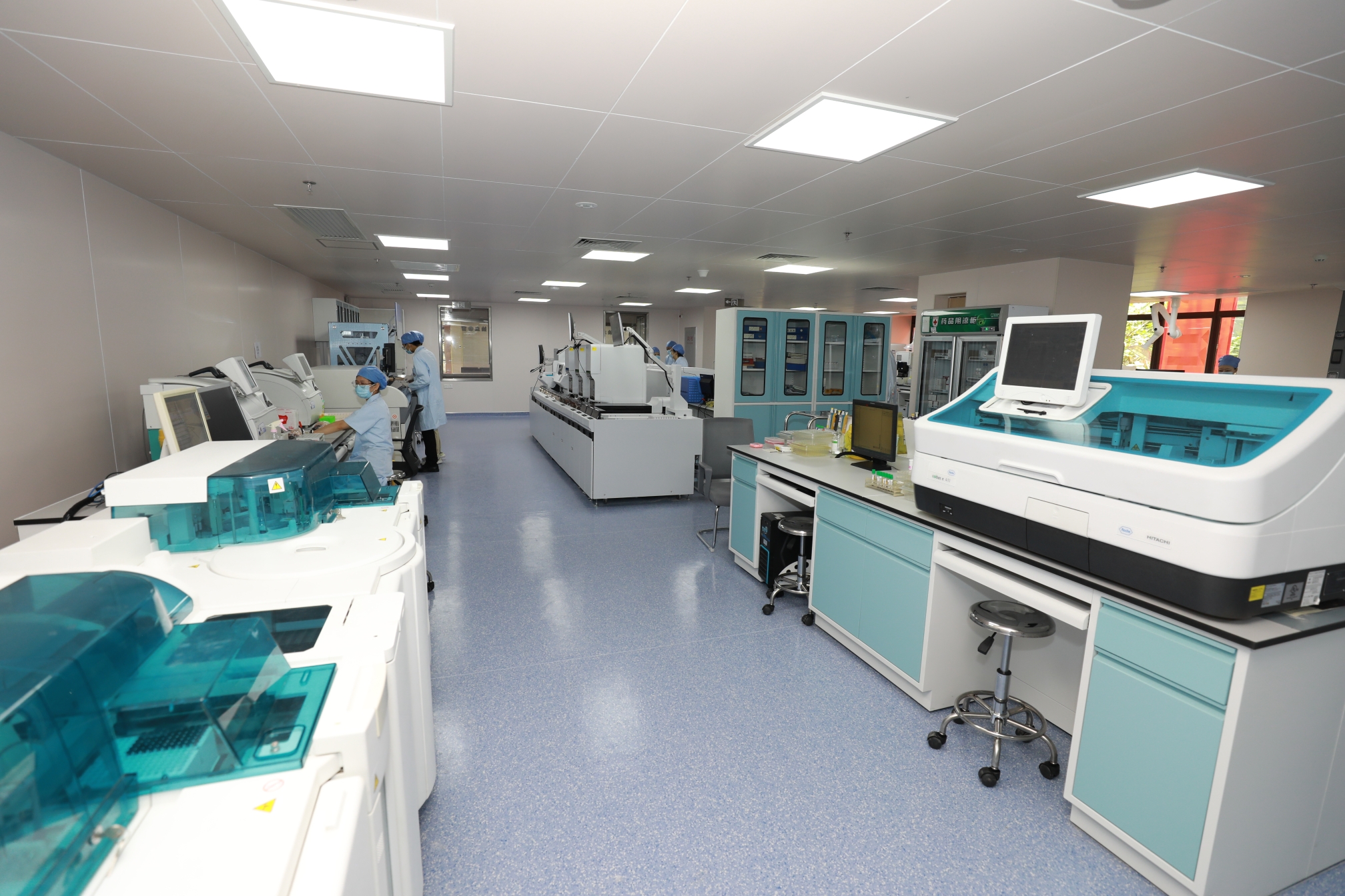 广州日报·新花城记者在走访发现,该综合楼内的自动化程度相当高,检验科配置了价值1200万元的大型生化免疫流水线,生化样本处理、检验、储存实现全闭环管理,其中生化分析模块检测速度可高达7000标本/小时,免疫分析模块检测速度可高达770标本/小时,提高工作效率及安全性;而门诊药房也配置了全自动发药系统,可实现门诊药房处方自动调配,大大提高配药的速度和准确性,日处理能力可达8000张处方。除此之外,整栋综合楼采取气动传送系统,药品在管道中可以快速地在各个部门间传输。