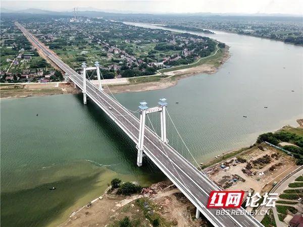 青龙洲大桥跨越的是湖南第二大河流——资江,全长1636米。大桥宽36.5米,双向6车道,设计时速80千米/小时,总投资8亿元。