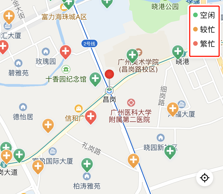 以不同颜色展示空闲、较忙