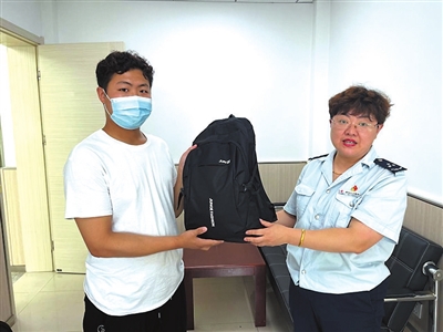 刘先生领回背包。