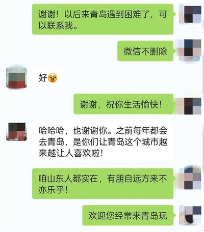 “青岛人都是活雷锋,真是太感谢了,他们让我感受到了青岛这座城市的温暖。”刘先生说道。