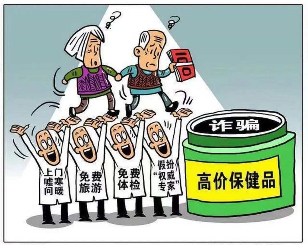 诈骗分子利用老人养生保健意识,诱惑老年人高价购买毫无用处的保健品,某些受疾病困扰的老年人会相信诈骗分子所说的各种神奇偏方疗法。诈骗分子往往以专业会议、健康讲座、组织义诊、免费体验等形式,以特殊功效、高科技、打折销售、消费返利、赠送礼品、会员优惠,向老年人宣传保健品,从而实施诈骗。