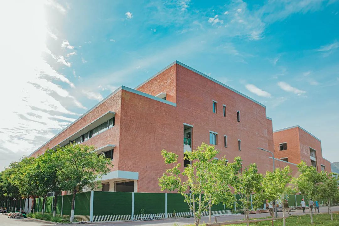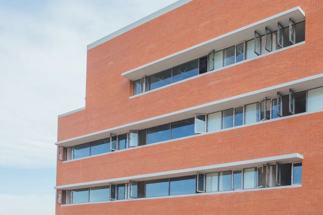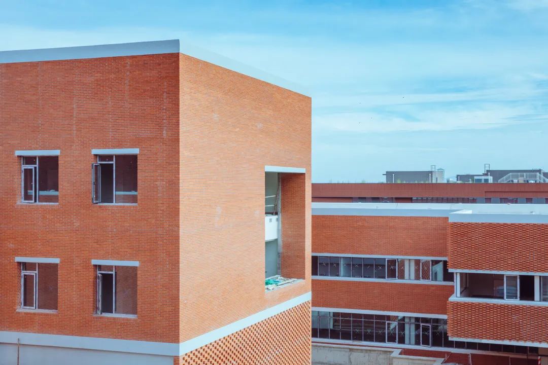 文科楼建筑面积20264㎡,建筑结构为地下1层,地上4层。建筑延续校园整体风貌,外立面采用“学院红”装饰多孔砖,彰显百年建筑品质与厚重文化底蕴;以浅灰色结构线条勾勒建筑轮廓,凸显“新文科”建设的人文与创新气息。