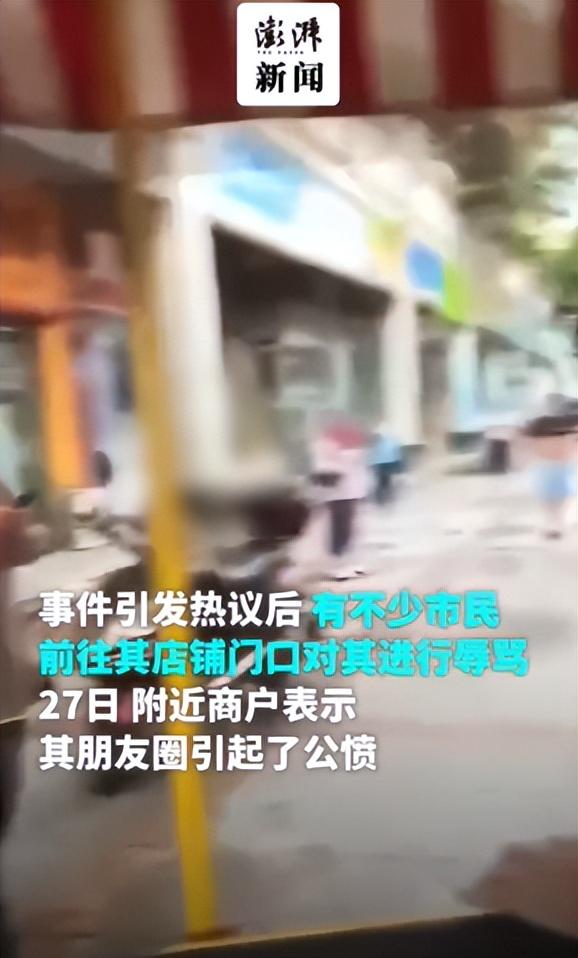 该事件引发热议。据澎湃新闻,附近商户表示,男子的朋友圈引发了公愤,26日有不少市民前往男子店铺讨说法,为女性鸣不平。而27日,男子的店铺没有开门。