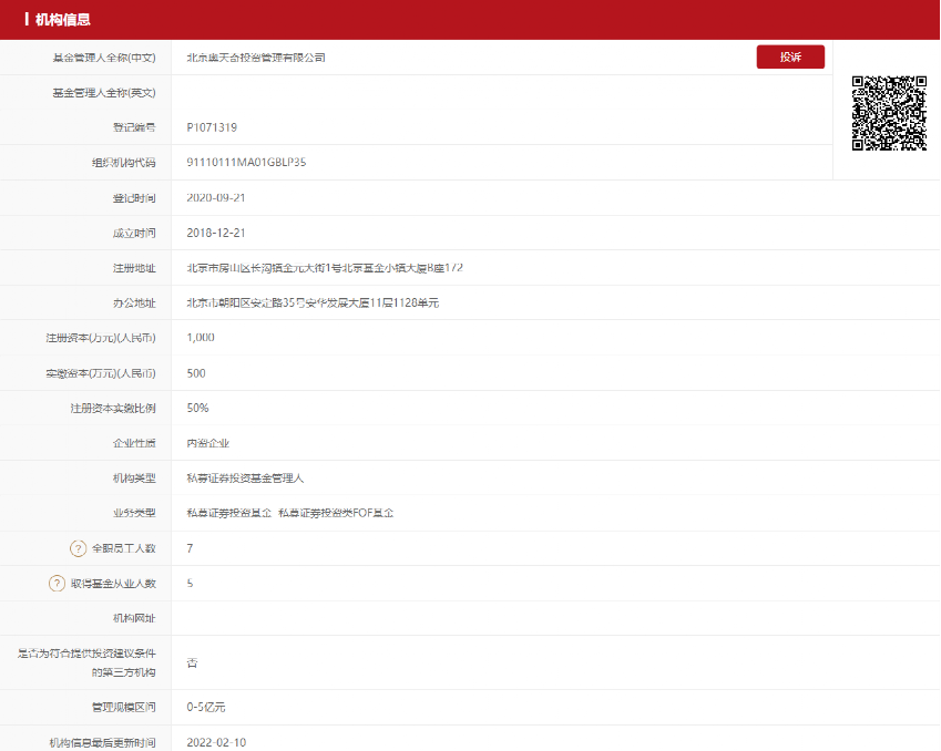 中基协信息显示,北京奥天奇投资管理公司成立于2018年12月,登记时间为2020年9月,注册资本1000万元,系私募证券投资管理人。公司全职员工7人,取得基金从业人数5人。目前披露4只运作私募产品,其中1只已清算。