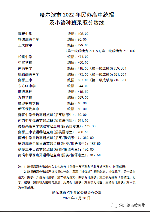 民办高中学校统招及民办高中俄语零起点班(奔赛中学、南岗中学、德强高级中学、剑桥三中)、日语零起点班(南岗中学、德强高级中学、剑桥三中)、西班牙语零起点班(南岗中学)录取;