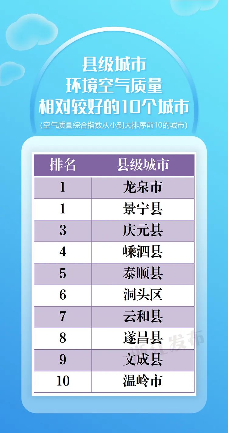 最新环境空气质量状况出炉!浙江4地进入全国前20,有你家乡吗?