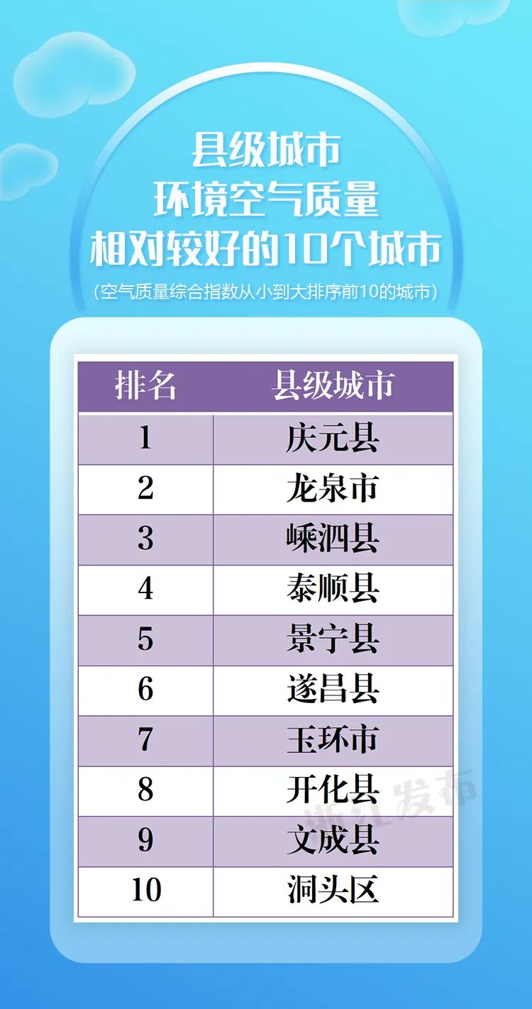 浙江多地进入全国前20,最新环境空气质量状况排名出炉!