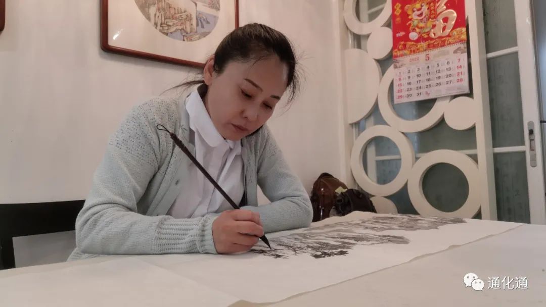 一画一整天,这是吕爱敏画画时的样子。她说,在静谧清新的画室内,与笔墨画卷相伴是一种享受,对绘画的喜爱,她情愿毕生追求。