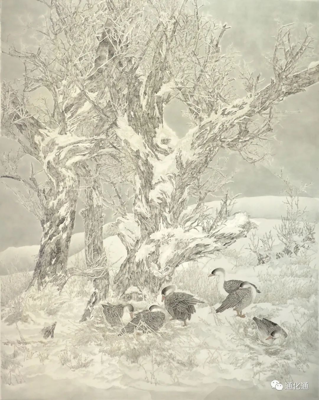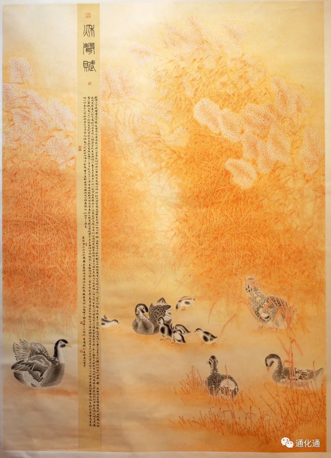 对绘画审美境界的追求和沉思,也呈现在吕爱敏创作的大量作品中,她的作品《雪落无声》《艳阳秋》入选“全国白山黑水美丽四平”中国画作品展;作品《圣地天祈·吉祷八荒》入选“全国第五届哈尔滨中国画美术双年展”;作品《秋声赋》《金蕉处处风》入选全国“神圣长白”全国中国画作品展等等。很多人对她的成绩赞誉有加,了解她的人却不足为奇。“我觉得绘画,得有一种不同寻常的韧劲儿,心里有着足够的热爱。这些年来,我很少有闲暇时间,所有的时间都用来创作,家人朋友知道我在画画,也会默默地支持我。”